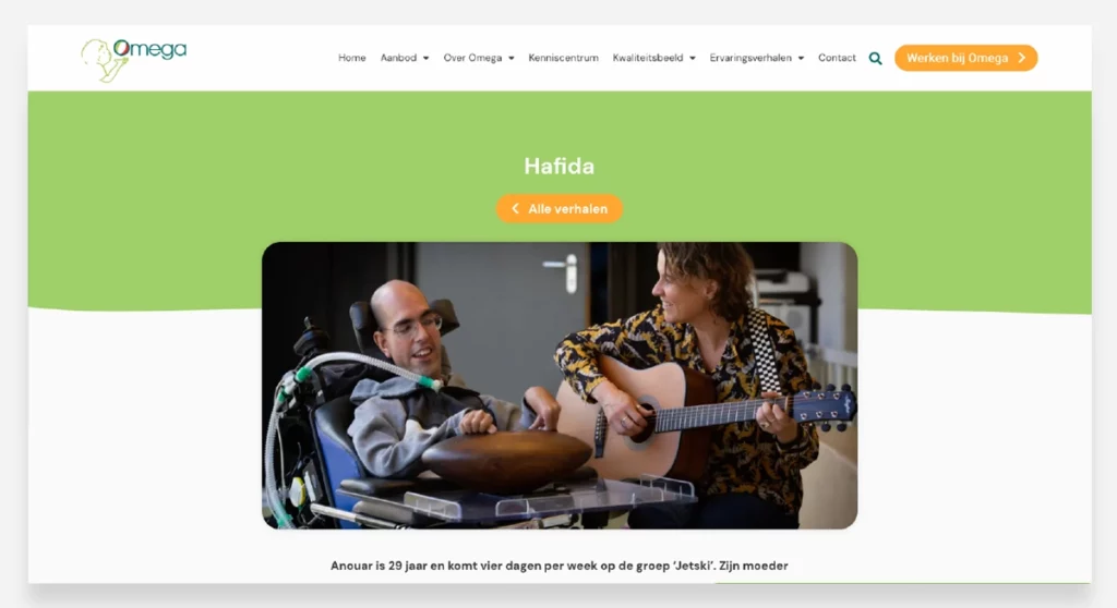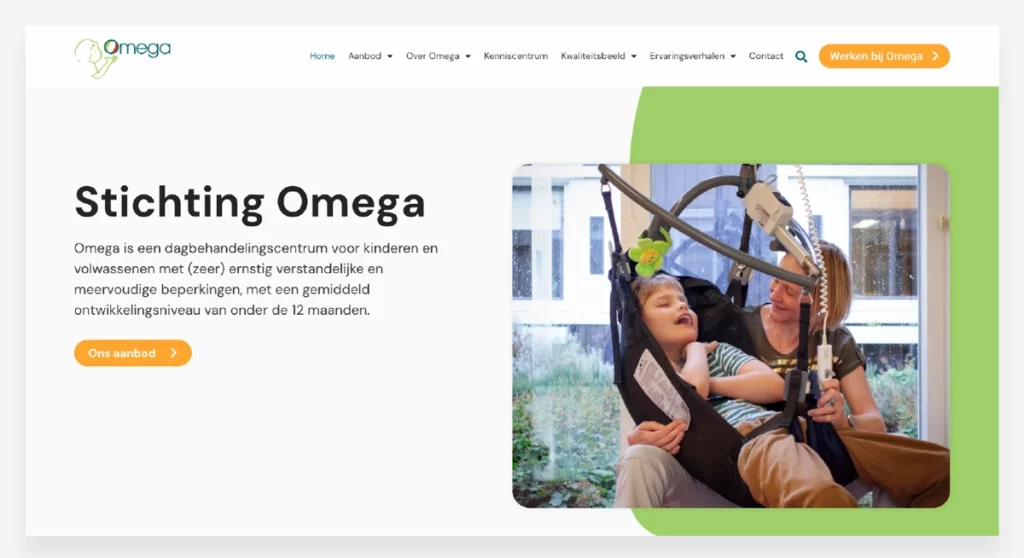 Voor Stichting Omega – een dagbehandelingscentrum in Amsterdam voor kinderen en volwassenen met (zeer) ernstige meervoudige beperkingen – mochten we een nieuwe website ontwikkelen die recht doet aan hun bijzondere missie. De wens was een zachte, toegankelijke en toekomstbestendige site die aansluit bij het eerder door ons gebouwde participatieplatform 'Vrienden van Omega'. De verhalen van ouders, begeleiders en vrijwilligers kregen een centrale plek, waardoor de website niet alleen informatief is, maar ook voelbaar maakt waar Omega voor staat: aandacht, menselijkheid en liefdevolle zorg.